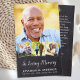 Gebetskarten sind eine nachdenkliche Möglichkeit, die Erinnerung an einen verstorbenen Angehörigen zu gedenken. Unsere modernen und eleganten Gebetskarten verfügen über eine Foto-Collage von vier Bildern und können mit einem Gedicht oder Gebet Ihrer Wahl individuell gestaltet werden. Diese Karten eignen sich hervorragend für Beerdigungsgunst oder als Keepsakes, um sie während einer Gedenkfeier oder Lebensfeier zu verteilen. Unsere Gebetskarten sind mit dem Augenmerk auf die Erinnerung konzipiert und sind ein berührender Weg, Beileid auszudrücken und denen, die trauern, Unterstützung zu bieten. Die Phrase "In Loving Memory" wird auf der Vorderseite jeder Karte prominent dargestellt, zusammen mit dem Namen Ihres Liebsten und dem Datum der Geburt und des Übergangs. Unsere Gebetskarten sind nicht nur eine schöne Hommage an das Gedächtnis Ihres Lieben, sondern dienen auch als Erinnerung der Liebe und Unterstützung, die Sie in dieser schwierigen Zeit umgeben. Bestellen Sie noch heute Ihre und lass uns helfen Ihnen, das Leben Ihrer Lieben mit einer dauerhaften Hommage, die für die nächsten Jahre geschätzt werden. COPYRIGHT © 2024 Judy Burrows, Black Dog Art - Alle Rechte vorbehalten. Memorial Elegante 4 Picture Beerdigung Gebetskarten