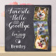 Feiern Sie Ihren besten Freund mit einer individuellen Gedenktafel für Haustiere in einem rustikalen grauen Schiefergestein. Diese einzigartige Hundeschlittendenkmalplakette ist das ideale Geschenk für sich selbst, Familie oder Freunde, um die Lieben zu ehren. Wir hoffen, dass das Foto Ihres Hundes Ihnen Freude, Frieden und glückliche Erinnerungen bringen wird. Zitat: "Du warst mein liebstes Hallo und mein schwerster guter Freund..in Loving Memory.." Siehe 'Personalisieren Sie diese Vorlage', um Fotos zu ändern, und den Namen. Es ist am besten, die Fotos so vorzuschneiden, dass sie im Rahmen zentriert sind. COPYRIGHT © 2020 Judy Burrows, Black Dog Art - Alle Rechte vorbehalten. Pet Memorial Personalisiert Dog Loss Keepake Foto Plakette