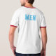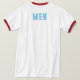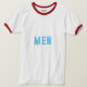 Men Text oder Name oder Word mit Sky Blue Color Text und The Style ist der einfache Ringer-T - Shirt, der Farbtyp ist weiß/rot und der Formattyp ist Adult L.