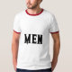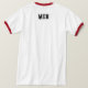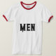 Men Text oder Name oder Word mit Schwarz-Text und The Style ist der Ringer-T - Shirt, der Farbtyp ist weiß/rot und der Formattyp ist Adult L.