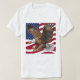 Ein majestätischer Adler mitten im Flug, seine Flügel verstreut sich voll und der Hintergrund ist lebendig, amerikanische Flagge .