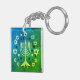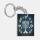 Menorah et Stars Bleu et Vert Porte - clé Chag Sameach!