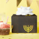 Eine digitale Darstellung der jüdischen siebenverzweigten Menorah (Hebräisch: מְ נ וֹ רָ ). Die siebenverzweigte Menorah, die im tragbaren Set von Moses in der Wildnis und später im Tempel in Jerusalem verwendet wird, ist seit der Antike ein Symbol des Judentums und das Emblem des modernen Staat Israel. Der Kohanim zündete jeden Abend die Menorah im Heiligtum an und säuberte sie jeden Morgen, indem er die Korbweide ersetzt und frisches Olivenöl in die Tassen gießt. Es wurde gesagt, die Menorah sei ein Symbol für die Nation Israels und unsere Mission, "ein Licht für die Nationen zu sein." (Jesaja 42:6). Unsere Weisen betonen, dass das Licht keine gewalttätige Kraft ist; Israel soll seine Mission erfüllen, indem es ein Beispiel gibt, nicht indem es Gewalt anwendet. Diese Idee wird in der Vision in Zechariah 4:1-6 hervorgehoben. Zechariah sieht eine Menora, und G-d erklärt: "Nicht durch Macht, nicht durch Power, sondern durch meinen Geist." G-d offenbarte das Design für die Menorah Moses wie folgt (Exodus 25:31-40): 31 Und du musst einen Lampenständer aus reinem Gold machen. Der Lampenständer ist aus Hammerarbeit zu machen. Seine Basis, seine Äste, seine Tassen, seine Knöpfe und seine Blüten sollen aus ihm ausgehen. 32 Und sechs Äste laufen von ihren Seiten aus, drei Äste des Lampenstehers von seiner einen Seite und drei Äste des Lampenschirms von der anderen Seite. 33 Drei Tassen, die wie Blume Mandeln geformt sind, sind auf dem einen Set von Ästen, mit abwechselnden Knöpfen und Blüten, und drei Tassen, die wie Blume Mandeln auf dem anderen Set von Ästen geformt sind, mit abwechselnden Knöpfen und Blüten. So ist es mit den sechs Ästen, die vom Lampenständer ausgehen. 34 Und auf dem Lampenständer sind vier Tassen, die wie Blume Mandeln geformt sind, mit ihren Knöpfen und ihren Blüten abwechselnd. 35 Und der Knopf unter zwei Zweigen ist aus ihm und der Knopf unter den beiden anderen Zweigen ist aus ihm und der Knopf unter zwei weiteren Zweigen ist aus ihm, denn die sechs Zweige laufen aus dem Lampenständer aus. 36 Ihre Knöpfe und ihre Zweige sollen davon ausgehen. Alles ist ein Stück Hammerwerk, aus reinem Gold. 37 Und ihr müsst sieben Lampen dafür herstellen; und die Lampen müssen angezündet werden, und sie müssen auf dem Raum davor leuchten. 38 Und seine Schnupfen und seine Feuerhaufen sind aus reinem Gold. 39 von einem Talent reinen Goldes sollte er es mit all diesen Utensilien daraus machen. 40 Und seht, dass ihr sie nach ihrem Muster macht, das euch im Berg gezeigt wurde. Bis 2009 wurde die früheste erhaltene Darstellung der Menorah des Tempels in einem Fries auf dem Titusbogen dargestellt, der an seine Triumphparade in Rom nach der Zerstörung Jerusalems im Jahr 70 erinnerte. Im Jahr 2009 wurden jedoch die Ruinen einer Synagoge mit Töpferei entdeckt, die vor der Zerstörung des Zweiten Tempels verabredet waren, unter dem Land in Magdala, das den Legionären Christi gehörte, die ein Zentrum für Frauenstudien errichten wollten. Im Inneren dieser Synagoge wurde ein rechteckiger Stein entdeckt, der neben anderen verzierten Schnitzereien eine Darstellung der sieben verzweigten Menorah hatte, die sich deutlich von der Darstellung auf dem Titusbogen unterschied, die wahrscheinlich von einem Augenzeuger zu der damals im Tempel von Jerusalem herrschenden Menorah gemeißelt wurde. Diese Menorah hat Arme, die polygonal sind, nicht gerundet, und die Basis ist nicht graduiert, sondern dreieckig. Auf Gräbern und Denkmälern, die aus dem 1. Jahrhundert als Symbol des Judentums und des jüdischen Volkes verabredet wurden, wurden Repräsentationen des sieben verzweigten Artefakts gefunden. Im Gegensatz zu einigen modernen Entwürfen enthielt die alte Menorah nichts, das sieben Kerzen ähnelte, da sie damals nicht existierten. Geeignet für Bar/Bat Mitzvahs, Chanukkah und andere Anlässe.