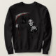Das Sweatshirt dieser Männer ist in Schwarz mit einem beängstigenden Halloween-Sensenmann-Druckdesign dargestellt.