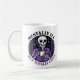 Embrace the chill with this honest and hilarious "Mentally Ill But Totally Chill" mug! The design features a stylized skeleton wearing a purple shirt, taking a calm sip of coffee, and framed by a laurel wreath and starry background.