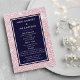 Un élégant menu de mariage chic abstrait bleu marine et faux rose blush pailleté. Ce menu de mariage moderne bleu marine et rose pailleté féminin est parfait pour toute fille glamour classe et sophistiquée. Ce design est parfait pour l'événement de fête tendance et stylé. Concevez avec votre propre message et information. Tous les designs sont imprimés.