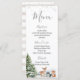 Carte Menu Anniversaire Animaux à feuillage persistant Hiver Onederland