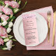 Menu Anniversaire rose pâle nom de la parties scin