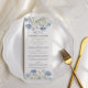 Menu Aquarelle Bleu Élégant Mariage Floral