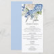 Menu Aquarelle bleu Hydrangea Roses blanches Mariage
