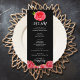 Une carte de menu avec des roses rouges aquarelles en haut et en bas est parfaite pour votre fête du Derby ou tout événement spécial. CORRESPONDANCE d'objets dans notre collection.
