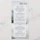 Eléments : aquarelle peinte du lac de montagne rustique en hiver; élégantes polices serif et sans serif. Couleurs : bleu, vert, gris, blanc, blanc cassé. Thèmes : montagnes, lacs, mariage extérieur, mariage d'hiver, élégant, rustique, impressionniste, aquarelle, montagnes enneigées. Collection : Collection de Mariages d'aquarelle de Rustic Mountain Lake. Type de produit : Menu