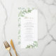 Aquarelle Vert et Fleurs blanches Menu | Ajoutez un accent verdoyant à votre paysage de table avec cette carte de menu de verdure personnalisable. Il présente des illustrations aquarelle et motif de feuillage et de fleurs blanches. Cette carte à la carte fleurie est parfaite pour les mariages du printemps et du jardin et d'autres événements.
