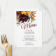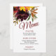 Les cartes de menu à thème automne sont l'accent parfait pour votre mariage d'automne ou douche nuptiale. Les fleurs bordeaux et les tournesols brillants éclatent vraiment contre les feuilles séchés. Modifiez le libellé, la couleur de police et le style pour customiser votre événement. Nombreuses tailles disponibles.