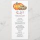 Cette carte de menu exhale l'esprit vibrant de l'automne, parfait pour votre dîner Thanksgiving. Le point central est une collection de citrouilles magnifiquement illustrés, capturant l'essence de la saison. Les tons chauds et le design soigné apportent une touche chaleureuse et donnent le ton à un dîner inoubliable. L'expression "Heureux" fait honneur à la carte, nous rappelant l'importance de la gratitude pendant cette période de l'année chère. Laissez ce menu orner votre table, ajoutant une touche d'élégance et de chaleur à votre rassemblement de Thanksgiving. Fêtez l'abondance et la convivialité avec ce menu d'inspiration automnale.