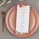 Moderne rustique automne rouille brûlée orange terre cuite aquarelle couleur botanique fleurs feuillage feuille et citrouille élégant script carte de menu personnalisée.