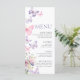 Cette carte de menu fait partie de la collection de baby showers Papillons, caractérisés par des papillons d'aquarelle et des fleurs de couleur rose, rousse et violette. Découvrez toute la collection : https://www.zazzle.com/collections/butterfly_baby_shower_collection-119128754303359559?rf=238902700998779330