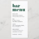Ajoutez ce papier à lettres de carte à barres personnalisable à votre paysage de table d'évènement. Ils sont dotés d'une typographie rétro audacieuse et d'une typographie simple verte et noire. Cette carte de menu verte au bar conviendra parfaitement aux mariages, aux douches nuptiales, aux baby showers, etc.
