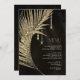 Optez pour un look glamour Old Hollywood en utilisant les pièces de cette suite mariage comme indiqué, avec des bijoux en cascade des feuilles de palmiers incrustés de diamants, ou supprimez les couches de bijoux pour un look légèrement plus conservateur. Cet ensemble présente des feuilles en or chatoyant contre un arrière - plan texturé de la couleur riche du café noir. Le menu de réception de mariage présenté ici a une bordure latérale de feuilles pétillants et une police serif élégante. Entrez facilement vos noms, date mariage et sélections de menu à l'aide du modèle fourni. Affichez le lien de collection sur cette page pour voir tous les éléments correspondants dans ce bel ensemble ou recherchez ID830 pour voir d'autres options de couleur pour cette conception.