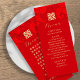 Il s'agit du menu bilingue chinois et anglais du Mariage à deux côtés. Les mariages chinois ont toujours beaucoup de délicieux plats, pourquoi ne pas le montrer sur votre menu mariage. Un seul menu par table ou tous les autres convives rendrait la table tellement élégante.