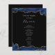 Abstraktes Black and Blue Agate Menü. Imitate Goldfolie. Skript-Schriftart-Highlights mit leicht lesbaren Serifennamen Schriftart. Leicht an Ihre Hochzeitsbedürfnisse anzupassen. Machen Sie Ihre eigene Speisekarte, nutzen Sie Ihren eigenen Text, um ein elegantes und dennoch preiswertes Veranstaltungsmenü zu erstellen. Einfach zu personalisieren. Benutzerdefinierte Menüpapierblätter.
