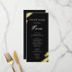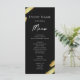 Abstraktes Black and Gold Menü. Imitate Goldfolie. Skript-Schriftart-Highlights mit leicht lesbaren Serifennamen Schriftart. Leicht an Ihre Hochzeitsbedürfnisse anzupassen. Machen Sie Ihre eigene Speisekarte, nutzen Sie Ihren eigenen Text, um ein elegantes und dennoch preiswertes Veranstaltungsmenü zu erstellen. Einfach zu personalisieren. Benutzerdefinierte Menüpapierblätter.