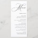 Set the tone for your reception with this customizable wedding menu card featuring whimsical calligraphy and a clean, elegant layout. Designed to suit any wedding theme or season, this menu card adds a thoughtful finishing touch to your table settings while keeping guests informed about the meal.