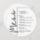 Une carte ronde noir et blanc pour le dîner vous propose un choix de menus en lettrage blanc chic, parfait pour une réception de mariage moderne, un dîner de répétition mariage, une fête d'anniversaire ou tout autre événement spécial avec un dîner assis. Personnalisez facilement vos choix et vos détails pour le dîner. PLUS de couleurs et de tailles dans notre magasin.