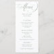 Ces cartes de menu élégantes, blanches et sauces vertes mariage présentent un style classique et ancien avec une calligraphie romantique. Ajoutez votre choix de dîners pour les entrées ou les entrées, le premier plat, le plat principal ou l'entrée, et les desserts. Donnez le ton pour votre réception de mariage ou dîner de répétition d'inspiration italienne sophistiquée de luxe, ou douche nuptiale ou les couples douche des offres de nourriture avec ce design élégant et minimaliste.