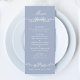 Elégante carte de mariage floral bleu poussiéreux avec une crête florale et des monogrammes à l'arrière. Pour une personnalisation plus avancée de cette conception, cliquez sur le BOUTON DESIGN TOOL ci-dessus !