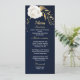 belle fleurs blanches et or feuille élégant menu bleu marine mariage. Les détails de la parties scintillant sont simulés