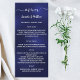 Personnalisez et ajoutez vos noms, la date du mariage et le menu. Arrière - plan bleu marine, texte blanc. La couleur bleue est inégale.
