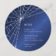 Une toile d'araignée et des étoiles en diamant élégantes sur un fond bleu foncé. Fonctionne sur du papier cartonné carré ou rond. Tout le texte est entièrement modifiable, vous pouvez donc facilement ajouter ou supprimer du texte et modifier le style/taille/couleur/disposition de la police pour répondre à vos besoins. Ce design est disponible dans d'autres couleurs, sur du papier cartonné de différentes tailles et également sur des invitations et des accessoires coordonnés.