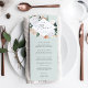 Les menus Boho chic floral mariage disposent d'un élément géométrique en haut avec vos initiales et votre date de mariage, encadrés par une bordure en aquarelle de feuillage botanique vert sauge et des fleurs de terre pastel dans des tons de pêche, d'ivoire et de blanc inspirés du désert. Personnalisez avec vos éléments de menu en dessous dans des lettres modernes. Conçu pour coordonner avec notre mariage Boho Blooms et notre collection événementielle.