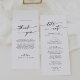 Ce menu boho chic noir et blanc merci et mariage est parfait pour un mariage minimaliste. Le design bohème moderne en noir et blanc présente une calligraphie rustique simple avec un style unique mais classique. Parfait pour toute saison : printemps, été, automne ou hiver. Personnalisez le dos de votre carte de menu avec une note de remerciement attentive à vos invités, amis et famille.