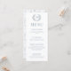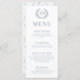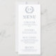 Améliorez le charme de votre réception de mariage avec ces cartes de menu sophistiquées et élégantes bleu mariage. Décorée de fleurs bleues délicates et présentant une couronne florale intemporelle agrémentée du monogramme de la mariée et du marié.