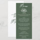 Menu Boho Dark Moss Green Hand Drawn Floral Wedding