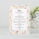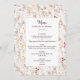 Ce menu de mariages de papillons fleur sauvage propose un arrière - plan blanc et une belle sélection de fleurs sauvages et de papillons colorés. Le design est d'inspiration bohème, avec un esprit fantaisiste et romantique.