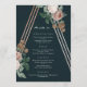 Un élégant menu du dîner conçu par Stacey Meacham avec des fleurs roses vintages et une structure triangulaire en or rose. Tout le texte mis à part l'art du menu est entièrement personnalisable vous permettant de changer la police, la couleur et/ou le placement de tous les mots. Utilisez-le facilement pour un événement d'entreprise. Coordonnée avec d'autres objets de notre collection de mariage Boho Pyramid par Stacey Meacham disponibles par l'intermédiaire de son magasin Zazzle.