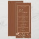 Le menu chic et élégant du mariage est décoré dans un style boho en terre cuite fleurie avec des fleurs sauvages d'aquarelle rustique et des accents dorés. Ce magnifique menu mêle harmonieusement le style contemporain et le style bohème, offrant une touche sophistiquée qui s’harmonise parfaitement avec l’esthétique de votre journée spéciale. Offre spéciale jusqu'au 15/01/2025 : Achetez ce produit, envoyez-moi un email à bpkolman@gmail.com avec votre prochain choix, et obtenez une réduction exclusive!