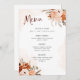 Menu Boho orange rustique | Mariage blanc aquarelle