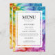 Présentez le menu plat recto verso et la carte de boisson de la collection "Ethereal Bloom", offrant une présentation transparente et élégante des options culinaires et de boissons pour votre célébration mariage. Sur le devant, des oeuvres d'art hyper-alcoolisées aux teintes vibrantes de bleus, violets, rouges, oranges et verts, accentuées par de délicats lys à double exposition, donnent un ton élégant et artistique. La légende "The Menu" invitation les clients pour explorer les plaisirs culinaires, tandis que les noms du couple et la date du mariage ajoutent une touche personnalisée, renforçant le raffinement de l'événement. La carte propose un choix de plats délicieux, tous décrits en détail, séduisant par des offres qui s'harmonisent avec le thème créatif et raffiné. En retournant vers l'arrière, vous serez accueillis par le menu à boissons chaudes, avec la même oeuvre captivante et la légende "Le menu". Vous pourrez y découvrir un grand choix de boissons, dans l'espace qui vous permettra de savourer des cocktails maison ou des boissons spéciales. Les noms du couple et la date du mariage continuent d'être affichés avec élégance, tout en conservant une conception cohésive et personnalisée. Cette carte recto verso améliore non seulement votre décor de réception avec des papeteries coordonnées, mais assure également une présentation visuellement étonnante et cohésive pour votre journée spéciale. Découvrez l'élégance vibrante de la Collection Ethereal Bloom, où chaque détail est soigneusement conçu pour créer une célébration mémorable et enchanteresse.