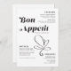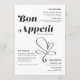 Ces menus de 5" x 7" mariage de style vintage avec lettrage noir et un titre stylisé, "Bon Appetit", en grandes lettres noires avec un accent de coeur sur un arrière - plan neutre. Le menu propose 2 entrées, 2 entrées et 2 desserts ainsi que les noms des couples mariages.