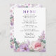 Fleurs d'aquarelle violette et rose élégantes cartes de menu
