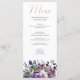 Cette somptueuse suite de Faire-part de mariage possède un bouquet floral d'aquarelle en violet, violet, lilas et blanc. Éléments botaniques eucalyptus et verdure. Parfaite pour un mariage moderne boho, cette suite comprend un design moderne simple et des détails de script cursif doré.