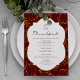 Elégant menu de dîner de fête de Thanksgiving rustique et chaleureux avec des tons dorés bordeaux et orangés et les contours des feuilles d'automne et motif citrouille.