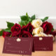 Minimalist autumn wedding with light beige brown leaf and a rich burgundy background