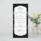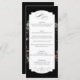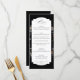 Ce design de menu chic présente une vie morte florale hollandaise du 18ème siècle, avec tulipes et fleurs sauvages blancs, rouges et or, sur un arrière - plan noir avec étiquette central personnalisé, des graphiques floraux complémentaires et une calligraphie personnalisée fluide et élégante. Le dos est doté d'une couronne florale optionnelle avec modèle monogramme.