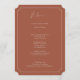 Cette carte de menu classique en terre cuite en forme de ticket présente une calligraphie moderne et une typographie contemporaine. Parfait pour un mariage moderne mais classique ou tout autre événement formel, mariage avec un thème de couleur Terracotta ou mariage élégant. À l'arrière, vous avez la place pour vos noms et la date du mariage - ou simplement supprimer le texte au verso.