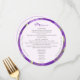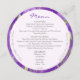 Carte Menu mariage avec bouquet élégant de fleurs d'eustomas violets et feuilles vert clair, couleur pastel printemps ou été douceur eustomas floraux romantiques fleurs roses. Peinture à l'aquarelle numérique botanique. Carte de menu Mariage en fleurs florales. Collection d'Eustomas Violets.